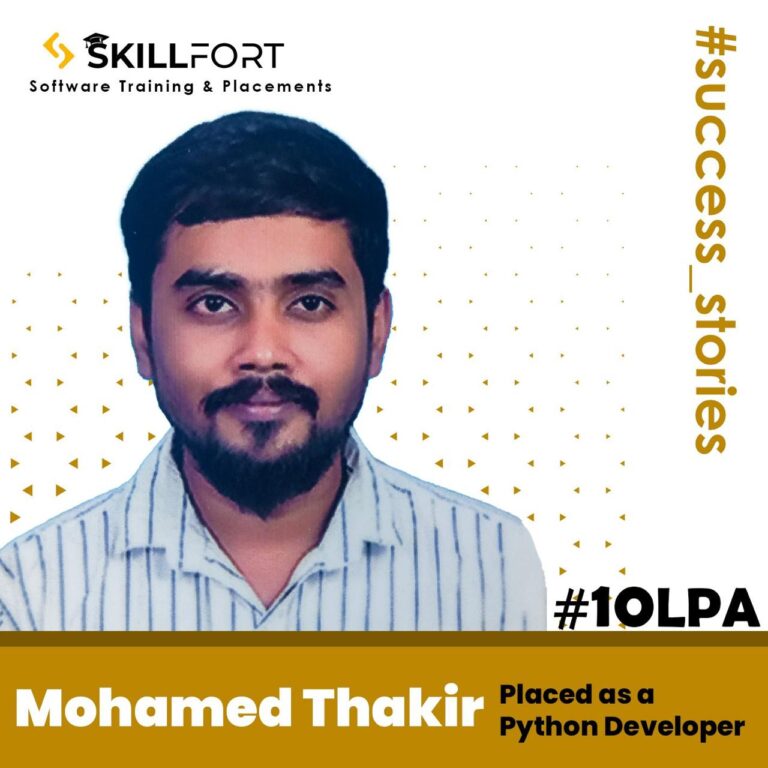 EXCELLENT Based on 125 reviews Posted on Thamim AnsariTrustindex verifies that the original source of the review is Google. GoodPosted on MOHANAPRIYA JAGANATHANTrustindex verifies that the original source of the review is Google. Great place to learn and develop the skillsPosted on suryaTrustindex verifies that the original source of the review is Google. I recently completed the Python Full Stack Developer course at Skillfort, and I had an outstanding experience. The training was well-structured, easy to follow, and focused on real-time projects. The instructors explained every concept clearly, from Python basics to advanced backend development, and also covered modern frontend technologies.Posted on Sridhar TTrustindex verifies that the original source of the review is Google. Good experience and learning more coursePosted on DHETCHIDHA RAJAKUMARTrustindex verifies that the original source of the review is Google. Great experience..Good placement trainingPosted on Kirubakar MTrustindex verifies that the original source of the review is Google. Placement is 100 percentPosted on surya sivaTrustindex verifies that the original source of the review is Google. A perfect place to learn,grow,and achieve with the goals with confidence👍🏻💯💯Posted on chitra sumithraTrustindex verifies that the original source of the review is Google. A very friendly environment and supportive trainers. They made me confident in both technical and interview skills. Thanks to the placement team for helping me get placed